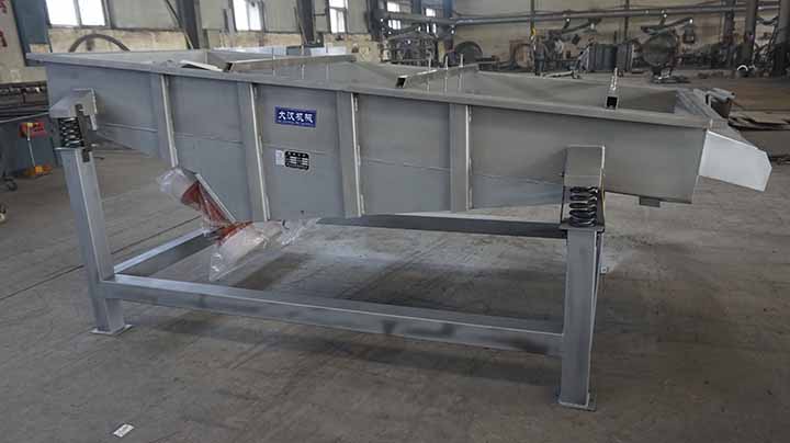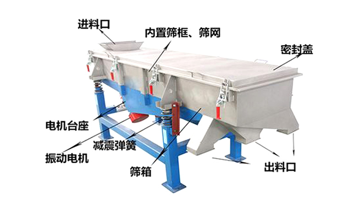重型直線篩由篩箱、振動電機、減振系統(tǒng)及底架等組成。篩箱由篩框、篩板、襯板等組成。