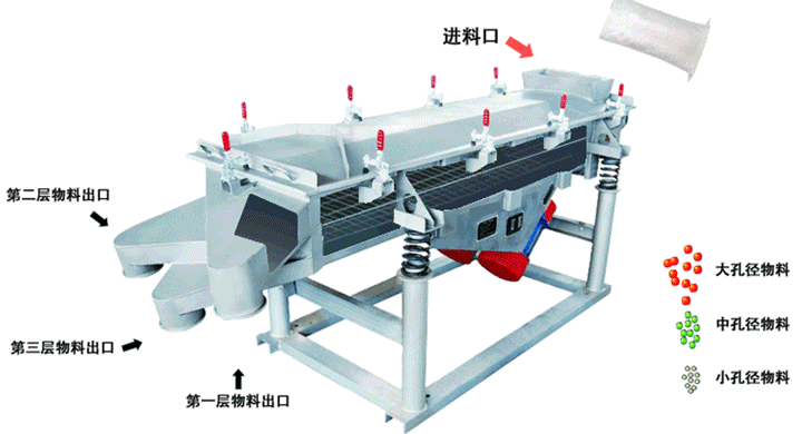 重型直線篩利用振動電機激振作為振動源,使物料在篩網(wǎng)上被拋起,同時向前作直線運動,物料從給料機均勻地進(jìn)入篩分機的進(jìn)料口,通過多層篩網(wǎng)產(chǎn)生數(shù)種規(guī)格的篩上物、篩下物、分別從各自的出口排出。具有耗能低、產(chǎn)量高、結(jié)構(gòu)簡單、易維修、全封閉結(jié)構(gòu),無粉塵溢散,自動排料,更適合于流水線作業(yè)。