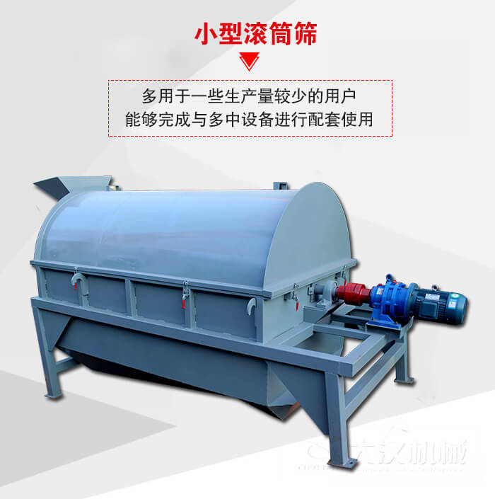 小型滾筒篩多用于一些生產(chǎn)量較少的用戶,與大型滾筒篩相比該產(chǎn)品的篩分直徑小,篩網(wǎng)面積小,驅(qū)動功率小,所以稱之為小型滾筒篩,但其改裝比較容易能夠完成與多中設(shè)備進(jìn)行配套使用。