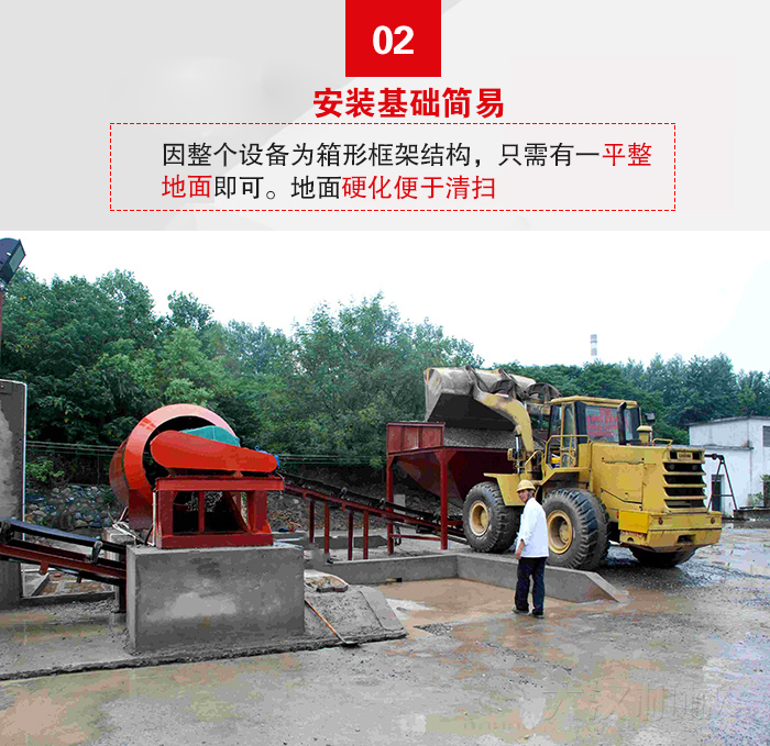因整個設(shè)備為箱形框架結(jié)構(gòu),只需有一平整地面即可。地面硬化便于清掃。