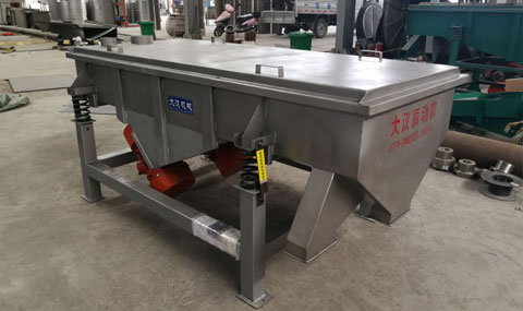 3、閉合電源開關,確認振動電機同步反向旋轉,進行10-20分鐘空運轉,設備在運行時如有異常聲音,應迅速關機進行檢查處理。設備運轉正常后,可將少量需篩分的物料通過進料口設入篩機內,確認物料向出料口方向行進,然后逐漸增加到所需和所能承受的給料量。