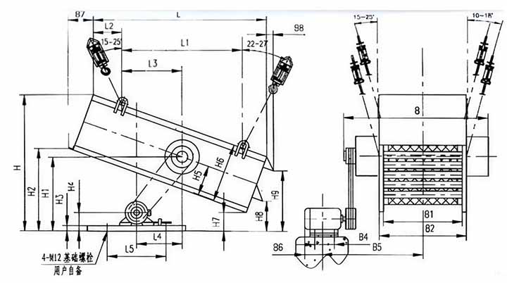 | SZZ1250×2500 | 3.1 | 6~40 | ≤100 | 150 | 850 | 2~7 | Y132S-4 | 5.5 | 2569×3110×1006 | 吊 | 1021 |