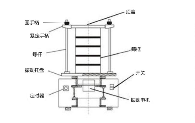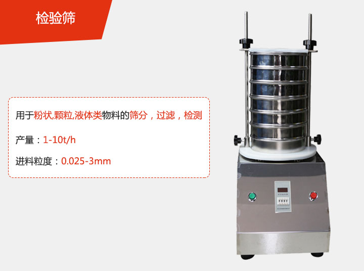 檢驗篩主是以立式振動電機作為整個電機的激振源,通過振動電機帶動上部振動盤振動,再通過振動盤傳導至安放在振動盤上部的篩框上,然后由需要檢測目數的篩框把小于篩網口孔徑的物料顆粒篩分至下層篩框,如此層層篩選,使每一層檢驗篩內只留相同粒度的物料,達到不同粒度的分離并確定此物料的粒度組成,使篩框中的物料能夠達到非常有效的過濾,分級,篩分的目的。