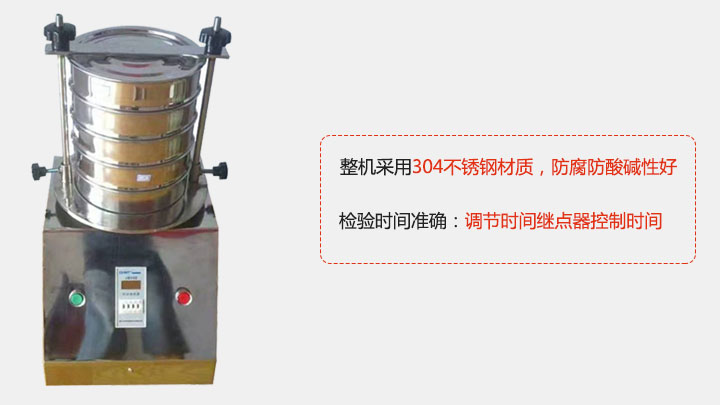 3,檢驗篩整機采用304不銹鋼材料,該材質針對于腐蝕酸堿物料的篩分并能保證其使用壽命。