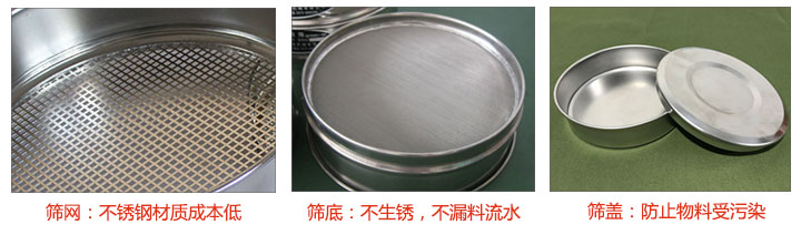 檢驗篩是由篩網、篩框、篩蓋、篩底精制而成。